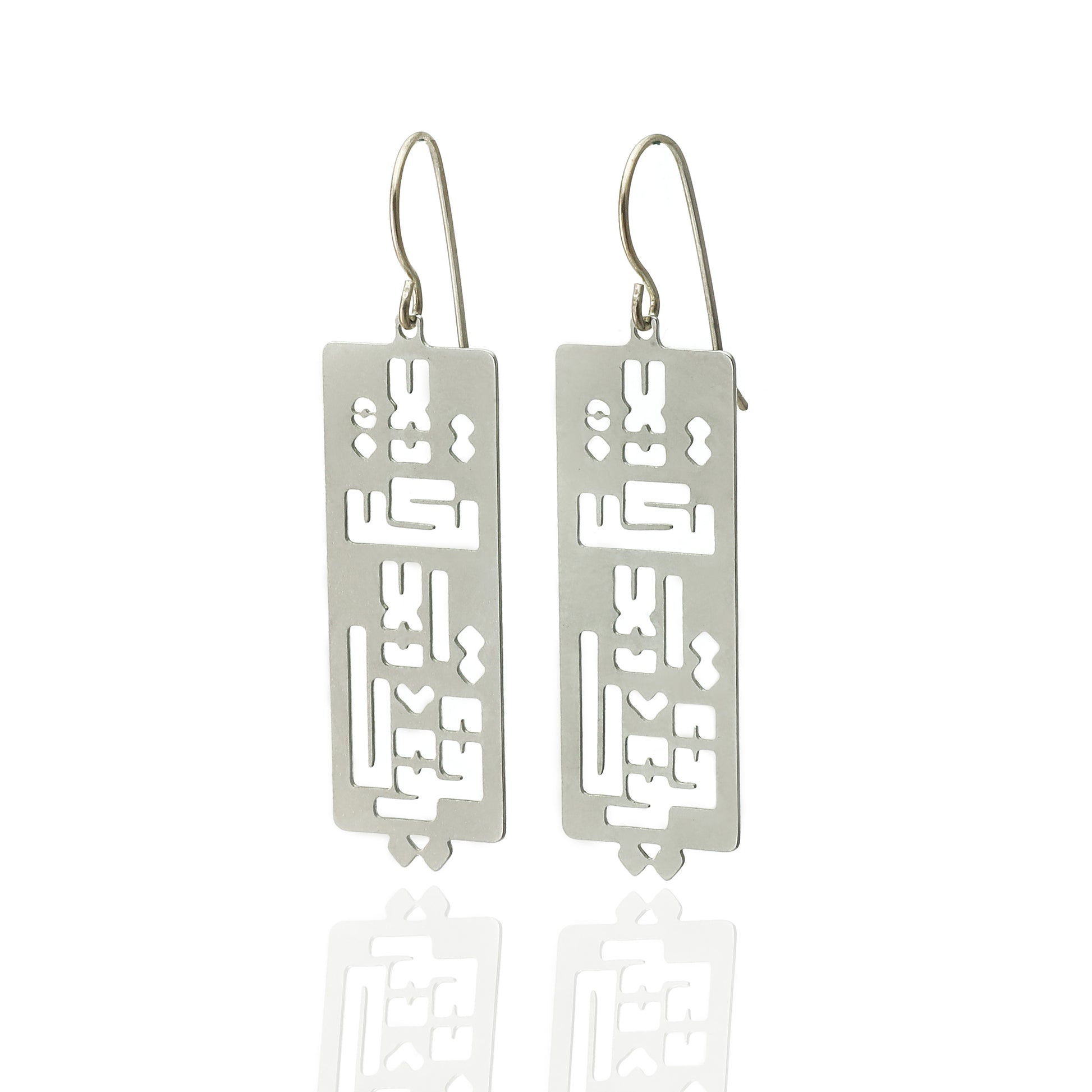 Elegant clean long necklaces decorated with beautiful Arabic Calligraphy, each gemstone is matched to a different word.
