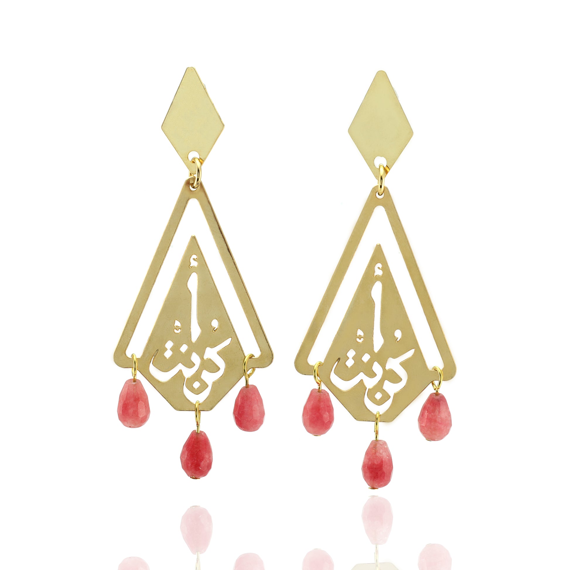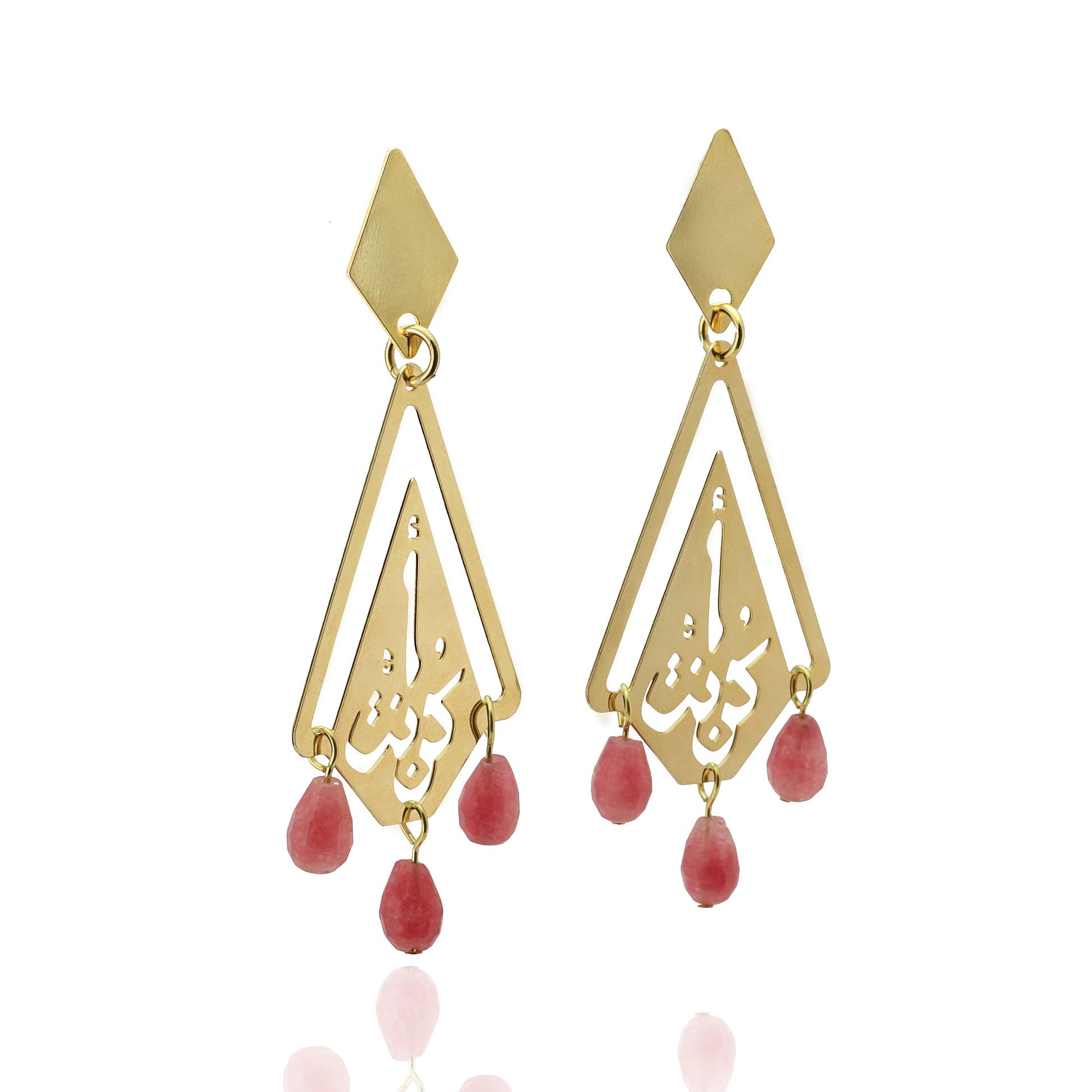 قلائد طويلة بتصميم ناعم وأنيق مزينة بالخط العربي الجميل، كل حجر كريم مطابق لكلمة مختلفة.