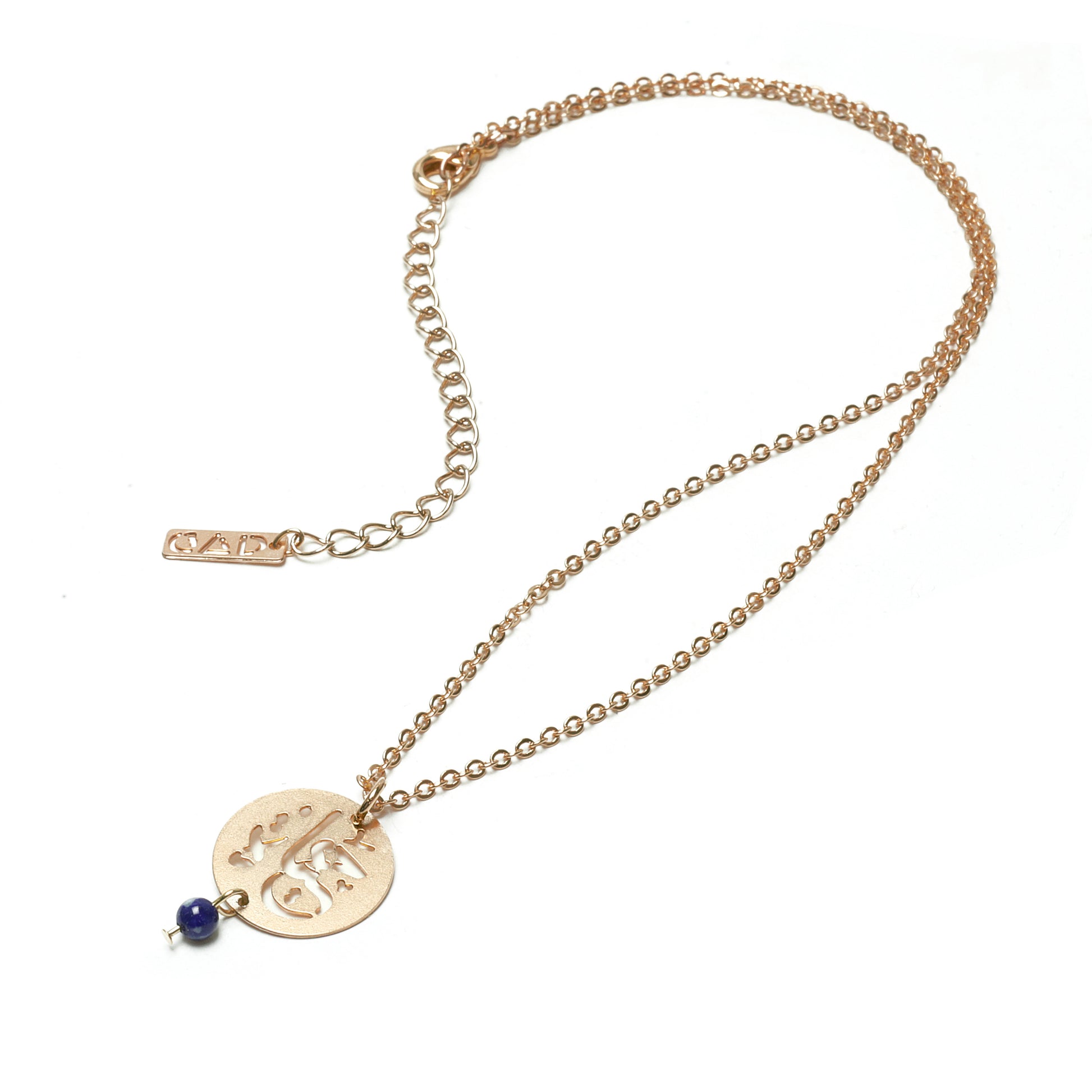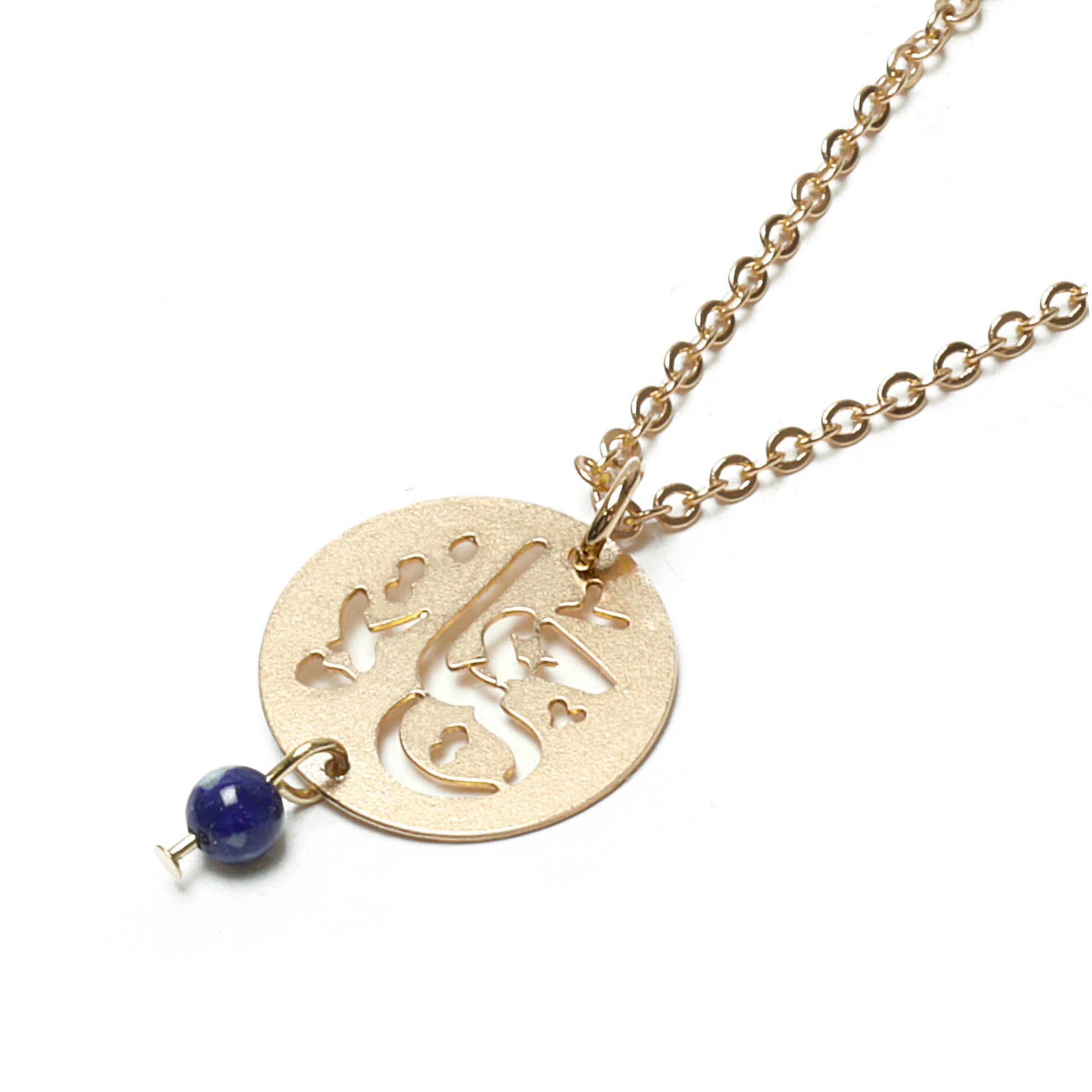 قلائد طويلة بتصميم ناعم وأنيق مزينة بالخط العربي الجميل، كل حجر كريم مطابق لكلمة مختلفة.