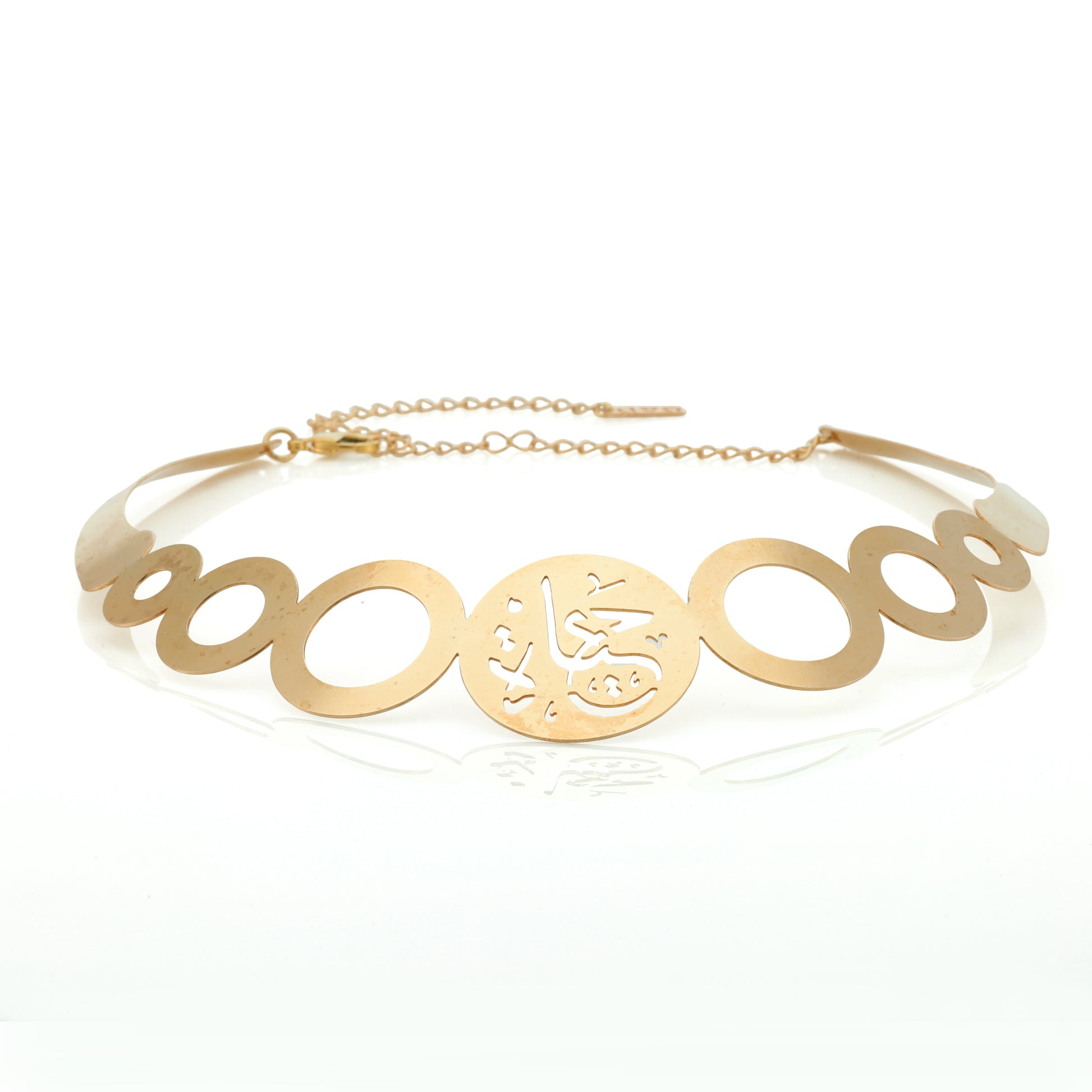 قلائد طويلة بتصميم ناعم وأنيق مزينة بالخط العربي الجميل، كل حجر كريم مطابق لكلمة مختلفة.
