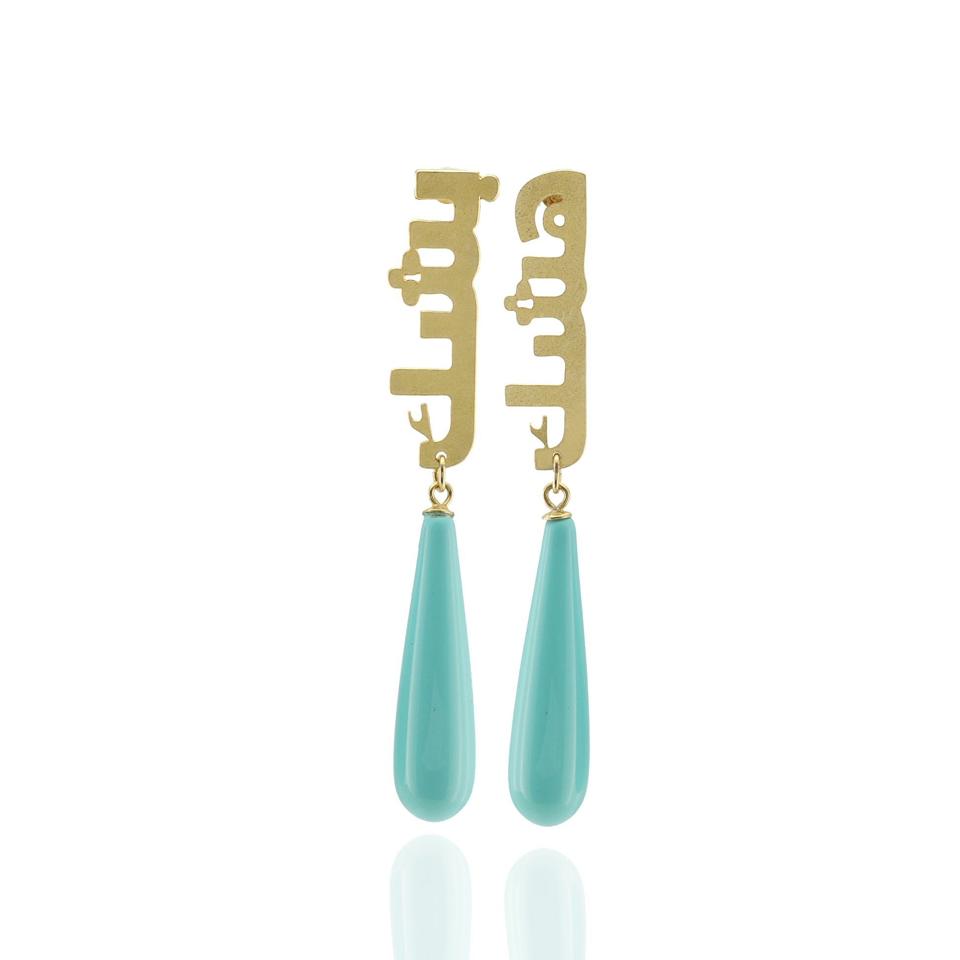 قلائد طويلة بتصميم ناعم وأنيق مزينة بالخط العربي الجميل، كل حجر كريم مطابق لكلمة مختلفة.