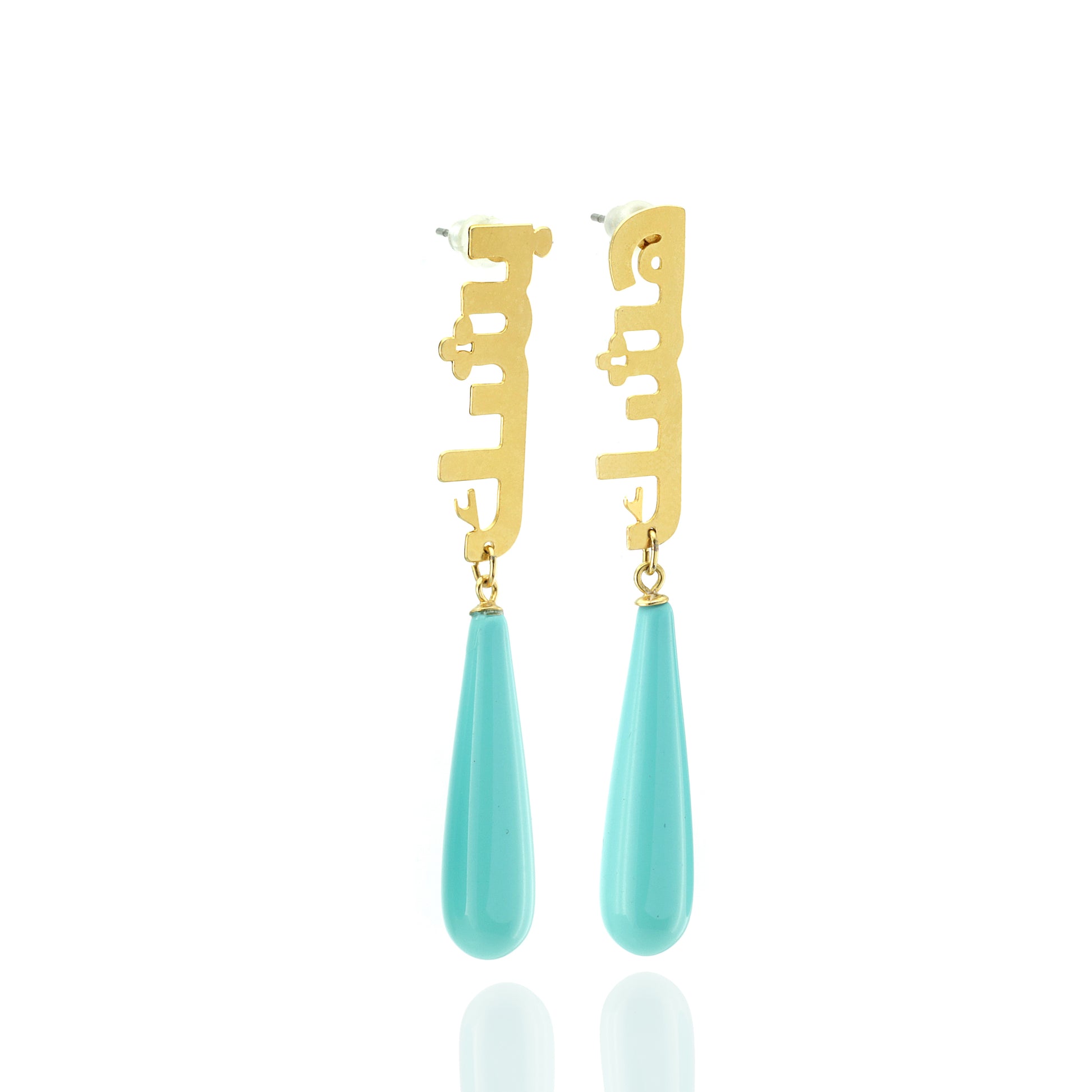 قلائد طويلة بتصميم ناعم وأنيق مزينة بالخط العربي الجميل، كل حجر كريم مطابق لكلمة مختلفة.