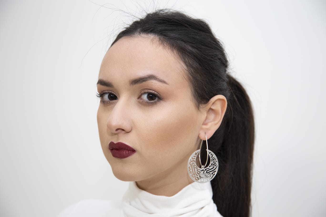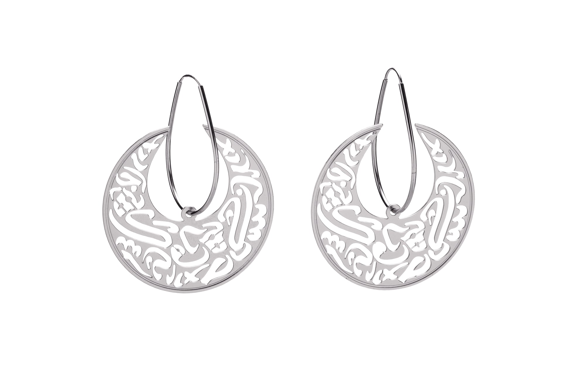 Arabi Hoops are part of my Arabi Collection - this collection takes the Arabic Calligraphy to a brand new level of modern sophisticated design, I combined the Arabic letters with a clean minimal shapes of drops and circles to create these statement big hoops.